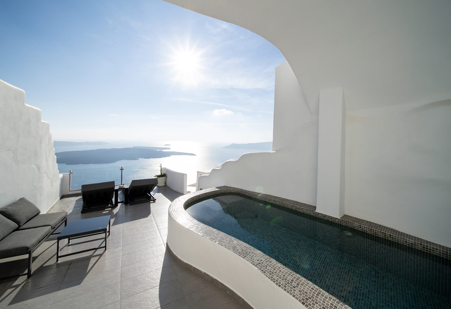 Take a long dip in your indoor Hot Tub in Pegasus Suites & Spa. Cuddle up together in the spacious outdoor area or lie back and enjoy the Caldera view from the tranquility of your own plunge pool. That might be just a dream, but in Pegasus it can be a reality!